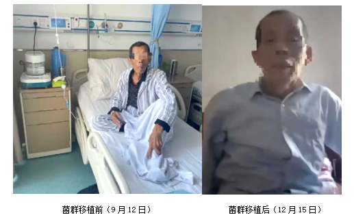 治療2022年9月12日行精準(zhǔn)菌群移植(液體活菌腸溶膠囊)治療,40粒/次,1次/天,共3天。菌群移植后當(dāng)天沒有排便,腹痛緩解,精神好轉(zhuǎn),情緒好。第二天下午排便1次,黃色成型,香蕉便。隨訪期間大便基本成型,9月15日1次/日,9月19日1次/日。10月維持1次/日,偶爾2次/日,11月、12月隨訪,排便維持良好,1-2次/日,精神狀態(tài)明顯好轉(zhuǎn),自訴體重增加。